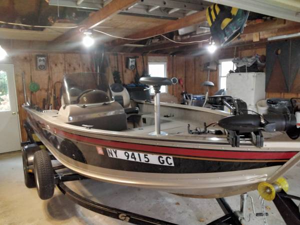 17 ft, 2011 side console with trailer, 2014 90hp Yamaha 4 stroke with trailer, 55#thrust min kota trolling motor, 2 hummingbird front and back fish finders with GPS and lake maps, pole seat and deck, livewell, 2 electric downriggers, rod holders, 2 downrigger poles, 2 bank on board charger, net, anchor, fish scale, assorted lures and tackle items.
