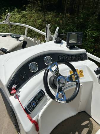 Many extras include a 55lb thrust trolling motor, two (2) remote controlled anchors, trickle charging system for trolling motor battery, boat cover, etc.