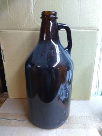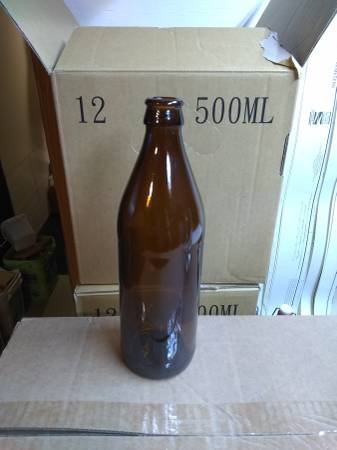 36 brown 500ml (1 pint) beer bottles - new - never used. 1 bottle tree. Also 2 -64oz brown growler bottles.