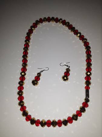 -Jewelry- Necklace with earrings Gold/Red, Silver. 18” long with magnetic clasp. $5 for both Christmas earrings $3 for both