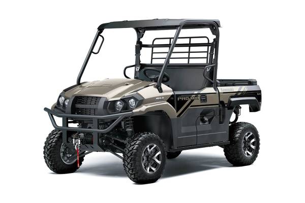 $1250 Factory REBATE is on now !! 2025 Kawasaki MULE PRO-MX EPS SE mid size UTV / SxS offers a comfortable fit for two passengers. Has the muscle to get the work done so there is more time for fun on the trails. The special edition model has the premium color Gold with Black trim. SE package also includes the 3,500lb Warn winch, HD front bumper, EPS power steering, sun top roof and the cast alloy wheels with 25″ tires. Features a fuel injected 695cc engine and the CVT automatic transmission. Selectable 2WD, 4WD and rear differential lock. Independent front and rear suspension. 699 lb cargo bed load and 1500 lb towing capacity. Halogen and LED headlights. Comes with Kawasaki’s awesome 3 year warranty. No hidden fees or charges – $15,868 including REBATE. We take trade-in's too.