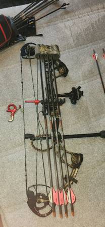 Pse decree bow set at 28" draw at 68lb draw. Comes with release,target arrows and quiver, hunting arrows and quiver, turkey arrows and bow case. Asking $500 for all. Five 1 8 5 nine 3 5 zero 8 zero