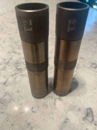 FOR SALE TWO(2) ROB ROBERTS SHOTGUN CHOKES IN EXCELLENT CONDITION. T2 & T3 . THE CHOKES WILL WORK IN BENELLI SBE 2 , SBE 3, M2, ETHOS, CORDOBA SHOTGUNS. $75.00 EACH. BOTH FOR $100 OBO.