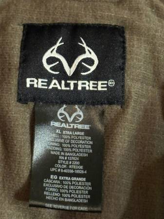 RealTree Camo XL Jacket and L Bibs in like new condition for cold weather